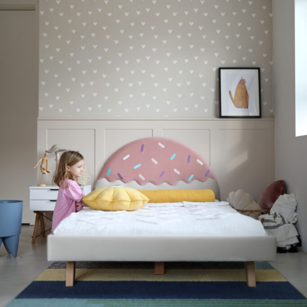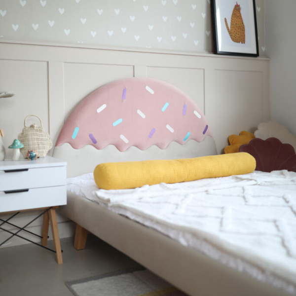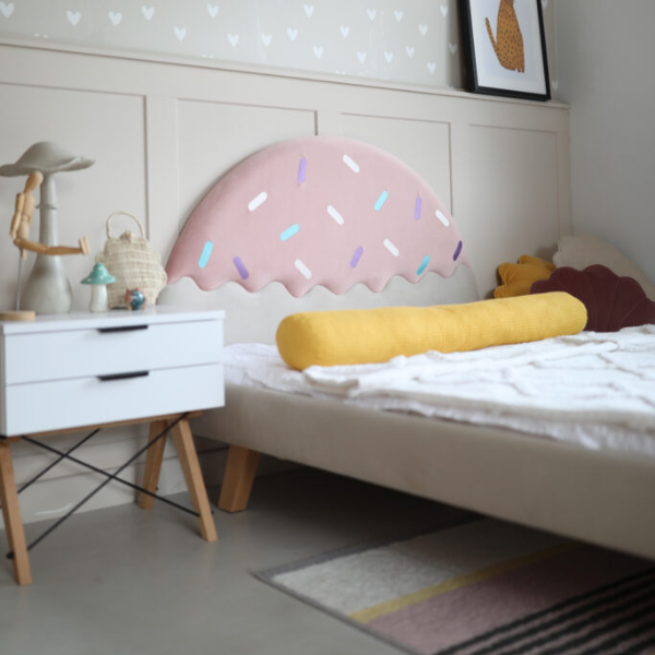 Tapicerowany zagłówek, przypominający apetyczny pucharek lodów z kolorową polewą i posypką, pobudza wyobraźnię i zamienia codzienne zasypianie w słodką przygodę. Łóżko Ice Cream zostało zaprojektowane z myślą o bezpieczeństwie i wygodzie – solidna drewniana rama zapewnia trwałość na lata, a dołączony elastyczny stelaż doskonale wspiera materac, dbając o zdrowy sen dziecka.