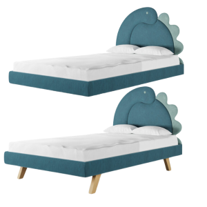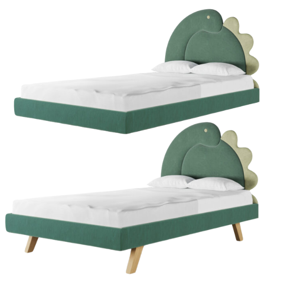 Przenieś dziecięcą sypialnię w świat pełen przygód z tapicerowanym łóżkiem Dino od rodzinnej manufaktury mebli Minko. To wyjątkowe łóżko dziecięce na drewnianych nóżkach, z zagłówkiem w kształcie sympatycznego dinozaura, łączy w sobie bajkowy design, trwałość i komfort, tworząc idealną przestrzeń do snu i kreatywnej zabawy. Tapicerowany zagłówek wykonany z wysokiej jakości sztruksu Passi jest dostępny w dwóch radosnych kolorach – zielonym i niebieskim – które dodają energii i ożywiają wystrój pokoju. Miękka tapicerka i ergonomiczna konstrukcja łóżka zapewniają wygodę i odpowiednie wsparcie dla kręgosłupa dziecka, co sprzyja zdrowemu wypoczynkowi. Drewniane nóżki nie tylko nadają łóżku lekkości i elegancji, ale też gwarantują jego stabilność i trwałość przez długie lata użytkowania. Gładka rama łóżka podkreśla nowoczesny charakter mebla i harmonijnie współgra z każdym stylem wnętrza. Dla większej funkcjonalności, łóżko Dino można wyposażyć w praktyczną szufladę na kółkach, która pomieści pościel, zabawki lub inne akcesoria, ułatwiając utrzymanie porządku. Dzięki możliwości personalizacji kolorystyki, łóżko można dopasować do indywidualnych preferencji dziecka. Łóżko Dino to nie tylko mebel – to zaproszenie do świata fantazji, które pobudza wyobraźnię i sprawia, że codzienność staje się bardziej ekscytująca. Idealne zarówno dla malucha, jak i młodego nastolatka.