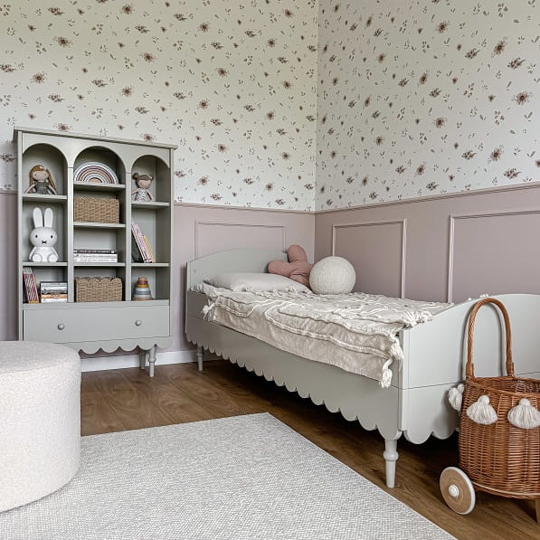 Łóżko 90x200 w stylu vintage w kolorze oliwkowym — elegancja i funkcjonalność do pokoju dziecka.