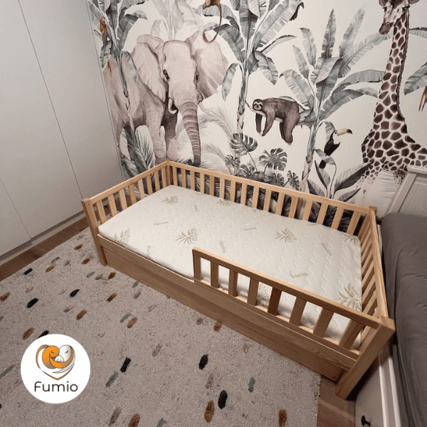 W przypadku tego łóżka dostępna jest również specjalna barierka, która została stworzona specjalnie z myślą o małych dzieciach. Ta barierka może być zamontowana po lewej lub po prawej stronie, aby dostosować się do preferencji i układu pokoju, sami decydujecie podczas montażu. Co więcej, istnieje opcja, w której barierka zabezpiecza 3/4 długości łóżka (do rozmiaru 90x180 cm będzie tylko 1/2), zapewniając jeszcze większe bezpieczeństwo dla dziecka.