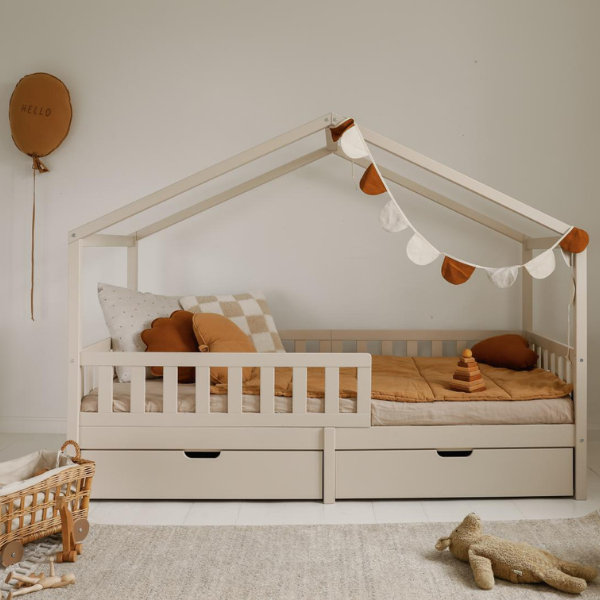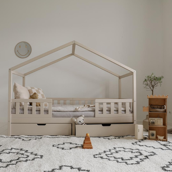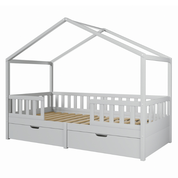 Łóżko domek MIYO szare – bo każde dziecko zasługuje na swój własny, bajkowy kącik.