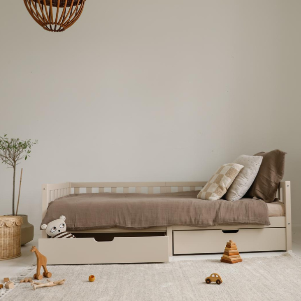 - Funkcjonalność na lata – dzięki dodatkowym nóżkom łóżko łatwo przekształcisz w klasyczne pojedyncze łóżko. Model 90 x 190 cm posłuży zarówno maluchom, jak i starszym dzieciom.