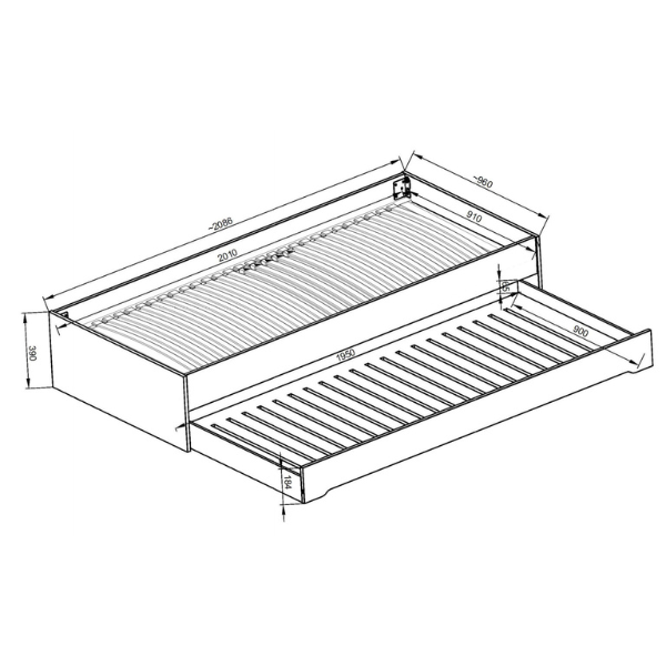 Rozkładana forma łóżka sprawia, że w dzień może pełnić rolę sofy, a w nocy oferować komfortowe miejsce do spania dla jednego lub dwóch użytkowników. To świetne rozwiązanie dla rodzeństwa, gości, a także jako wygodne miejsce odpoczynku dla zmęczonego rodzica. Górny materac pasuje do wymiaru 90×200 cm, dolny do 90×195 cm o maksymalnej wysokości 11 cm.