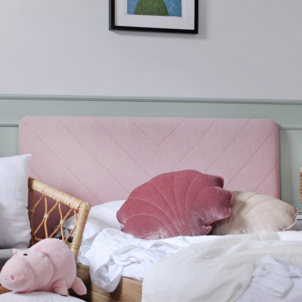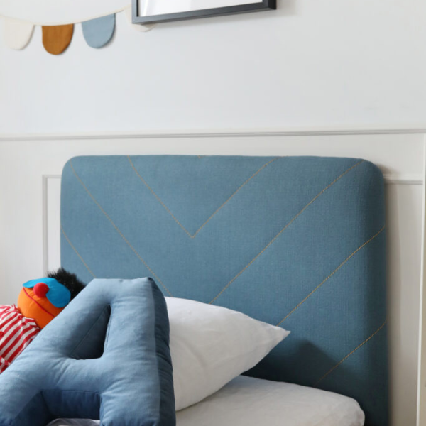 Zagłówek nie tylko nadaje meblowi eleganckiego charakteru, ale także zapewnia wygodne oparcie podczas czytania książek, oglądania bajek czy nauki. Miękkie przeszycie w modny wzór jodełki dodaje klasy i przytulności każdej dziecięcej sypialni. Wykończony został certyfikowanymi tkaninami OEKO TEX, które są bezpieczne, trwałe i przyjazne dla skóry dziecka. Wybór tkanin obejmuje setki delikatnych, miękkich materiałów w szerokiej gamie kolorystycznej – każdy znajdzie coś dla siebie.
