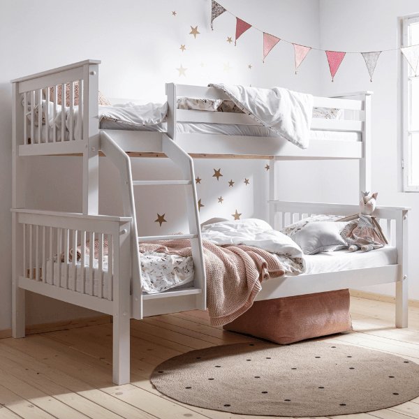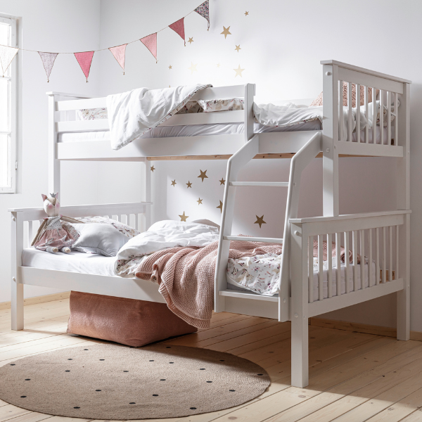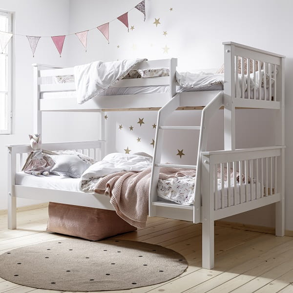 Łóżko piętrowe COLLET TRIO 90x200 + 120x200 cm w kolorze kaszmir / beż to praktyczne, stylowe i długofalowe rozwiązanie dla rodzin, które cenią harmonię i wysoką jakość wykonania.