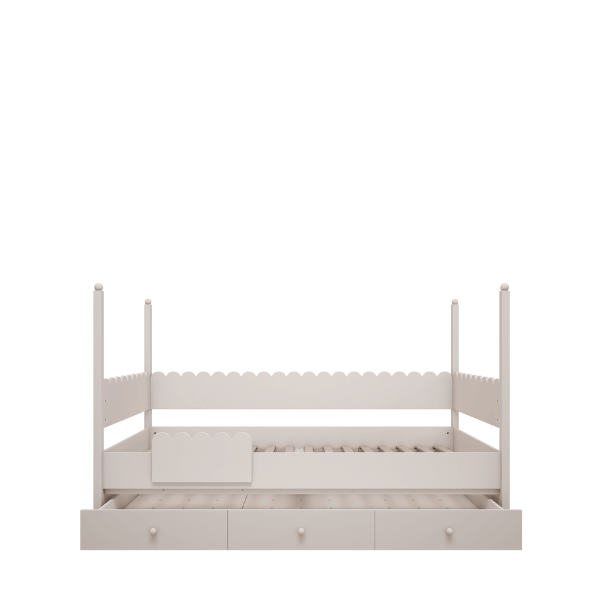 Górne łóżko przeznaczone jest dla dzieci powyżej 6. roku życia, a dolne – dla młodszych lub jako alternatywa do codziennego spania. Dzięki swojej konstrukcji łóżko pozwala zaoszczędzić przestrzeń, oferując jednocześnie komfortowy sen dla dwójki dzieci. Dodatkowo, w dolnej części znajduje się praktyczna szuflada, która może służyć zarówno jako pojemnik na pościel, jak i trzecie miejsce do spania – idealne na wizyty przyjaciół. Stabilna, solidna konstrukcja i zaokrąglone krawędzie zapewniają bezpieczeństwo użytkowania. Łóżko Babushka to nie tylko miejsce snu, ale również uroczy element dekoracyjny, który wprowadza do dziecięcego pokoju magię i domowe ciepło.