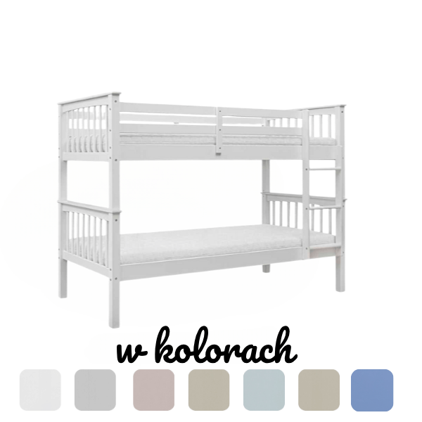 Stabilna drabinka i wysoka barierka górnego łóżka gwarantują komfortowy i bezpieczny sen, także dla młodszych dzieci. Konstrukcja w całości wykonana jest z litego drewna sosnowego, dzięki czemu łóżko cechuje się naturalnym wyglądem i długą żywotnością.