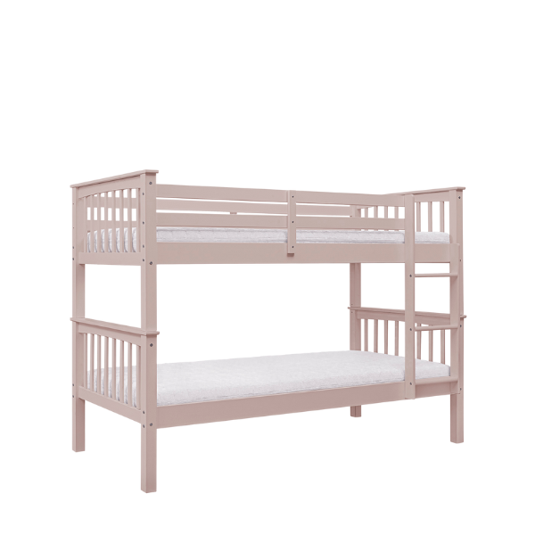 Łóżko piętrowe SZCZEBLINKA w odcieniu bladego różu to idealne rozwiązanie dla rodzeństwa lub dzieci dzielących wspólną przestrzeń. Delikatna, pudrowa kolorystyka wprowadza do wnętrza subtelną elegancję i lekkość, tworząc przytulną, ciepłą atmosferę – szczególnie polecaną do dziewczęcych pokoi urządzonych w naturalnym lub pastelowym stylu.