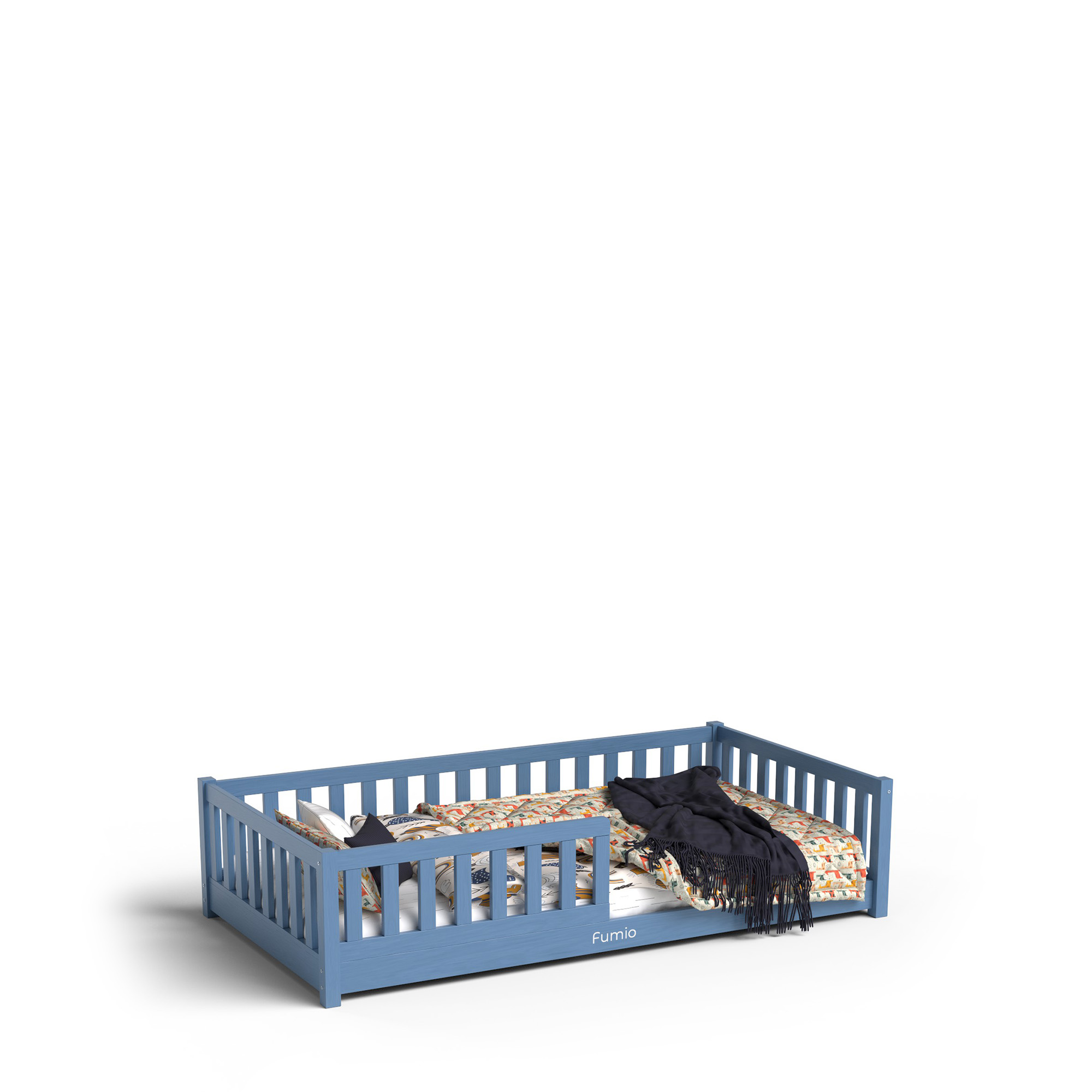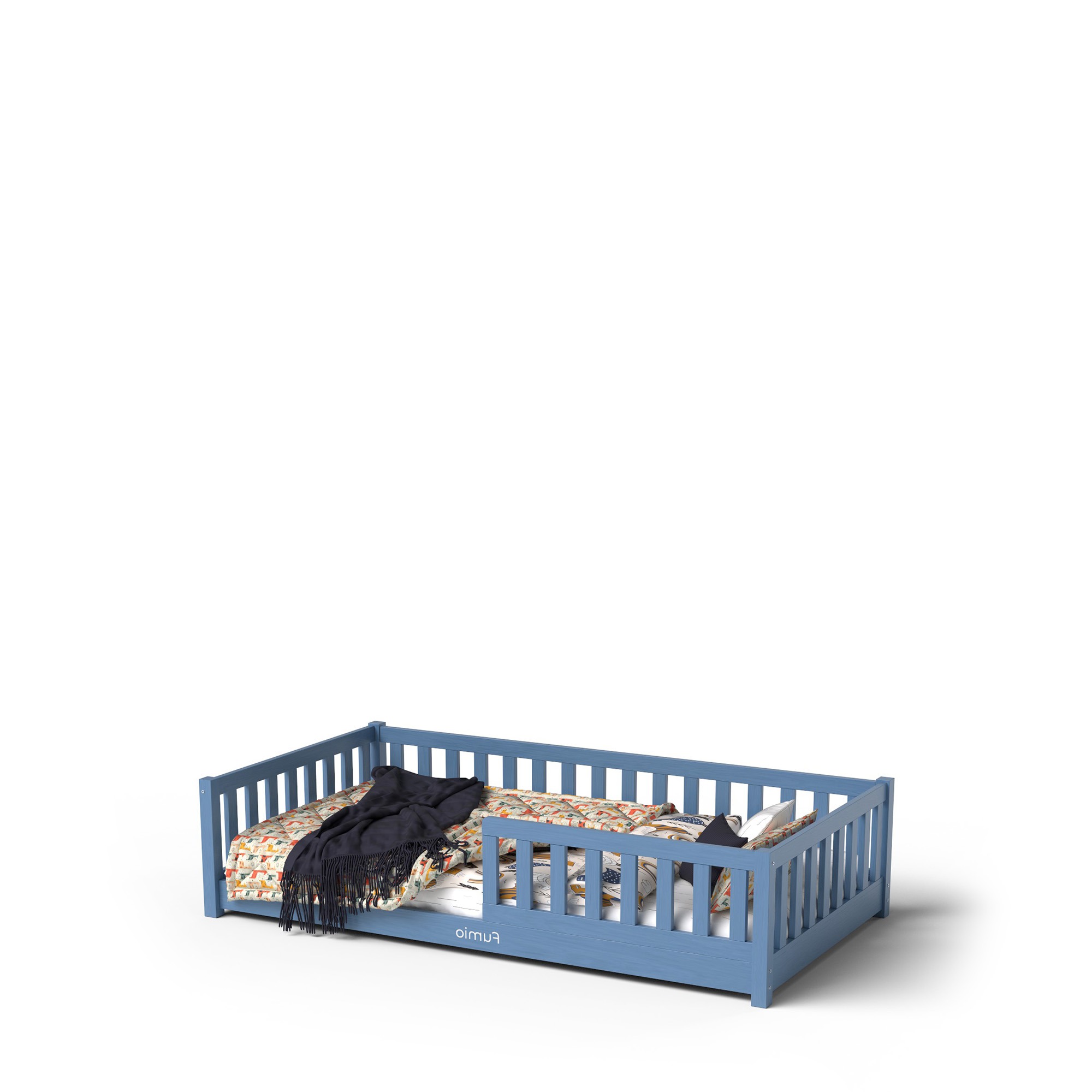 To łóżko to doskonały wybór jako pierwsze „dorosłe” miejsce do spania po łóżeczku niemowlęcym. Ułatwia dziecku budowanie rutyny, pozwala mu czuć się bezpiecznie i komfortowo, a jednocześnie wspiera jego naturalny rozwój. Niebieski kolor wprowadza do wnętrza spokój i harmonię, tworząc przytulną przestrzeń do snu, zabawy i codziennych marzeń.