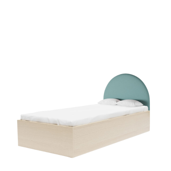 Łóżko PÓŁOKRĄGŁE z drewnianą skrzynią - różne kolory