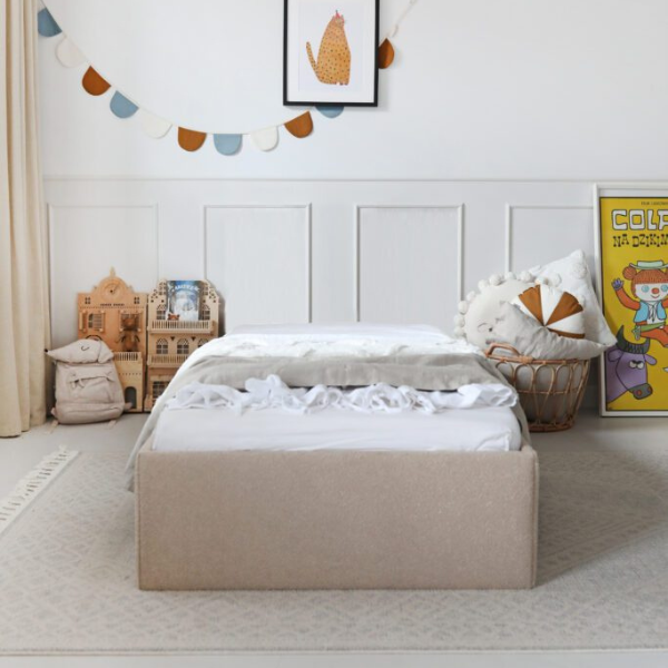 Tapicerowane łóżko dziecięce Sofa ze skrzynią – minimalistyczna forma i maksymalna funkcjonalność!
