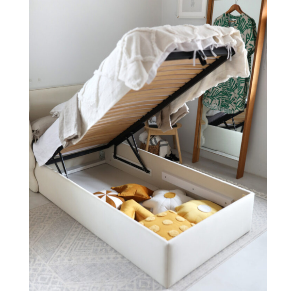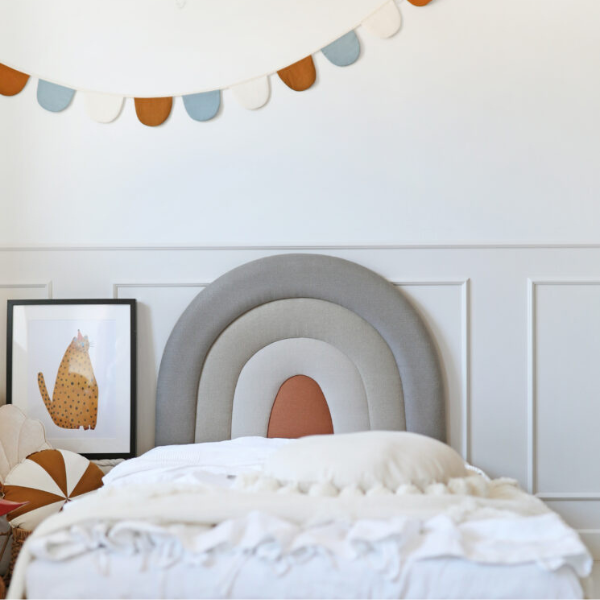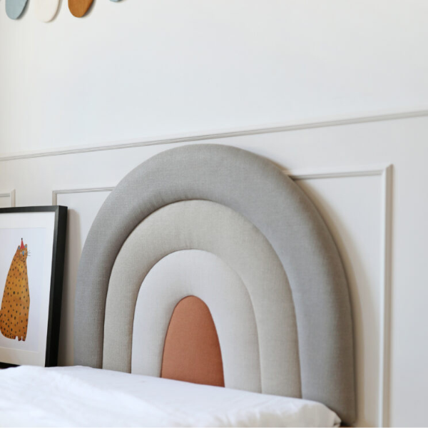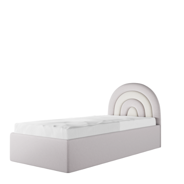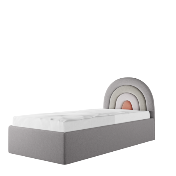 Łóżko dziecięce Rainbow od Minko to idealne połączenie uroku, funkcjonalności i wysokiej jakości wykonania. Zaprojektowane z myślą o dzieciach i nastolatkach, zachwyca oryginalnym zagłówkiem w kształcie tęczy, który wprowadza do pokoju radosny i przytulny klimat. Każde łóżko jest starannie wykończone, a jego tapicerowana rama dostępna w wielu kolorach sprawia, że z łatwością dopasujesz mebel do każdej aranżacji wnętrza. Zagłówek zbudowany z miękkich łuków nie tylko pięknie wygląda, ale też stanowi wygodne oparcie podczas wieczornego czytania lub relaksu. Praktycznym dodatkiem jest pojemny, tapicerowany schowek na pościel, otwierany do góry. Ukryty w konstrukcji łóżka, pomieści nie tylko kołdry i poduszki, ale także zabawki, sezonowe ubrania czy inne dziecięce skarby. Tapicerka pojemnika dopasowana jest kolorystycznie do ostatniego łuku zagłówka, tworząc estetyczną i spójną całość. Stabilna, drewniana konstrukcja gwarantuje bezpieczeństwo i trwałość, a użyte materiały posiadają certyfikat OEKO TEX – są bezpieczne, ekologiczne i przyjazne dla dzieci. Dodatkowo możesz wybrać boczki zabezpieczające oraz miękkie panele ścienne PILLE, które chronią i ozdabiają pokój. Łóżko dostępne jest w różnych rozmiarach, dopasowanych do indywidualnych potrzeb. Rainbow Box Texti to wyjątkowy mebel, który rośnie razem z Twoim dzieckiem.