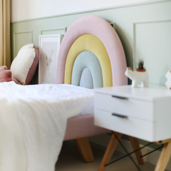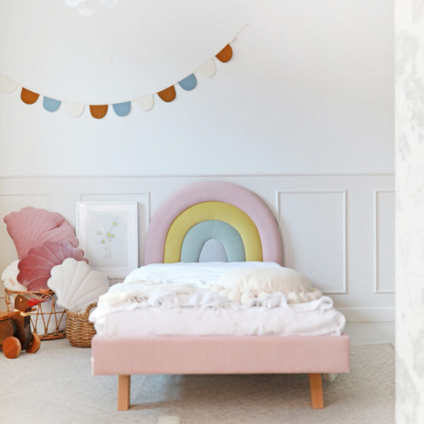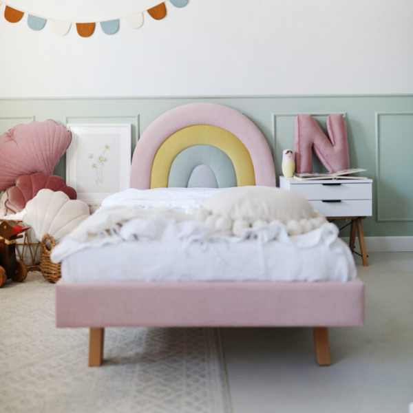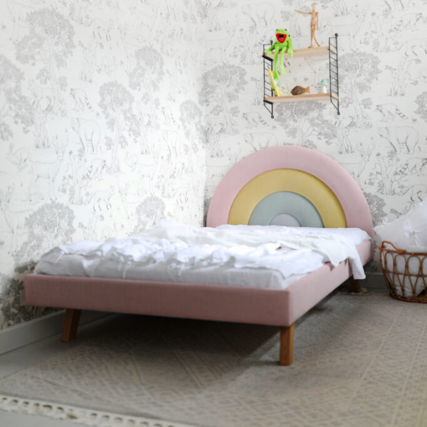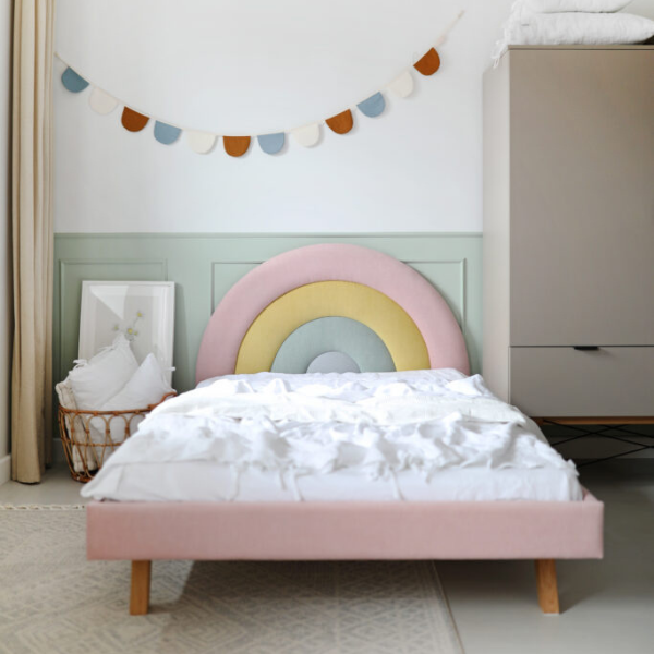 Łóżko dziecięce Rainbow tapicerowane – tęczowy komfort i przytulność na lata!