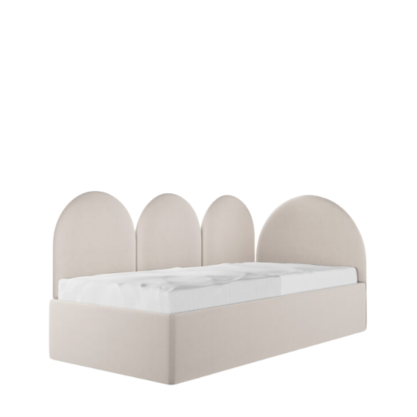 Tapicerowane łóżko dziecięce Półokrągłe to idealny wybór do pokoju zarówno malucha, jak i nastolatka. Wyróżnia się pięknym, półokrągłym zagłówkiem, który nadaje wnętrzu miękkości i przytulnego charakteru. Jego obłe kształty oraz szeroki wybór przyjemnych w dotyku tkanin sprawiają, że mebel staje się nie tylko funkcjonalny, ale także estetycznym elementem dziecięcego pokoju. Łóżko wyposażone zostało w tapicerowaną skrzynię na pościel lub zabawki, która skutecznie pomoże w utrzymaniu porządku w przestrzeni dziecka. Dzięki podnoszonemu stelażowi dostęp do przechowywanych rzeczy jest szybki i wygodny. Materiały użyte do obicia łóżka są trwałe, łatwe w czyszczeniu i posiadają certyfikat OEKO TEX – co oznacza, że są bezpieczne dla dzieci i środowiska. Dodatkowym atutem łóżka są opcjonalne boczki zabezpieczające oraz miękkie, półokrągłe panele ścienne – oba rozwiązania zwiększają bezpieczeństwo i komfort codziennego użytkowania. Dostępność wielu kolorów i tkanin pozwala na pełną personalizację mebla – dzięki temu łóżko Pille Półokrągłe Box Texti można łatwo dopasować do każdej aranżacji. Decydując się na meble z rodzinnej manufaktury MINKO, wybierasz ręcznie wykonany produkt najwyższej jakości, zaprojektowany z troską o detale i codzienny komfort Twojego dziecka. To inwestycja w design, bezpieczeństwo i funkcjonalność, która zostanie z Wami na lata.