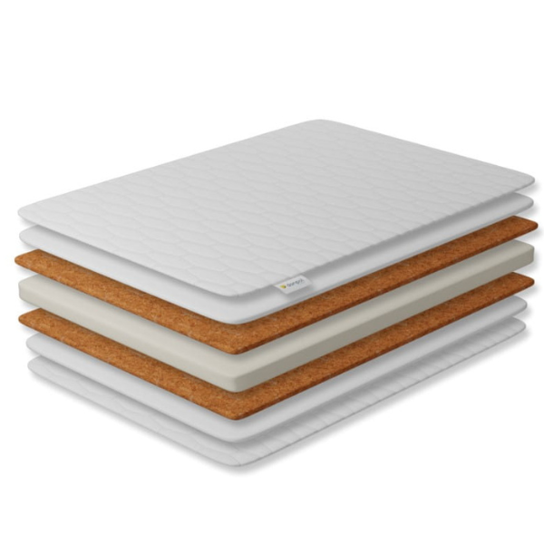 BUDOWA:Materac składa się z warstwy kokosowej, zapewniającej wentylację i trwałe wsparcie kręgosłupa, oraz pianki poliuretanowej, która gwarantuje elastyczność, odpowiednią sztywność i komfort. Dzięki antyalergicznym właściwościom i trwałej konstrukcji materac zapewnia higienę oraz bezpieczeństwo użytkowania.