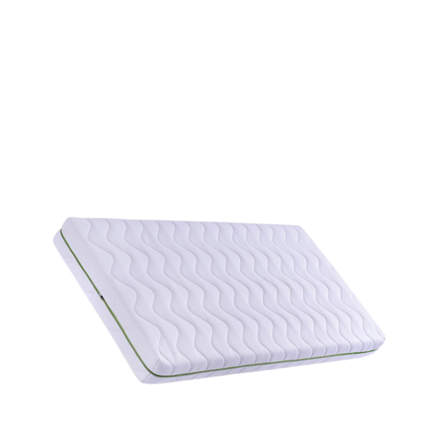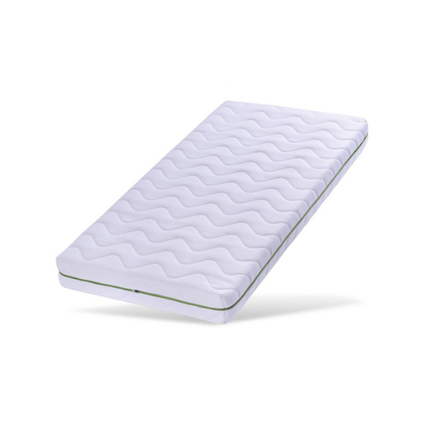 BUDOWA:Materac wyposażony jest w ryflowaną piankę poliuretanową, która zapewnia skuteczne odprowadzanie wilgoci oraz optymalną cyrkulację powietrza, gwarantując komfort i higienę użytkowania. Pokrycie wykonane z miękkiej, pikowanej tkaniny o jasnych kolorach i delikatnych przeszyciach jest zarówno estetyczne, jak i przyjemne w dotyku, dbając o komfort i wygląd materaca.