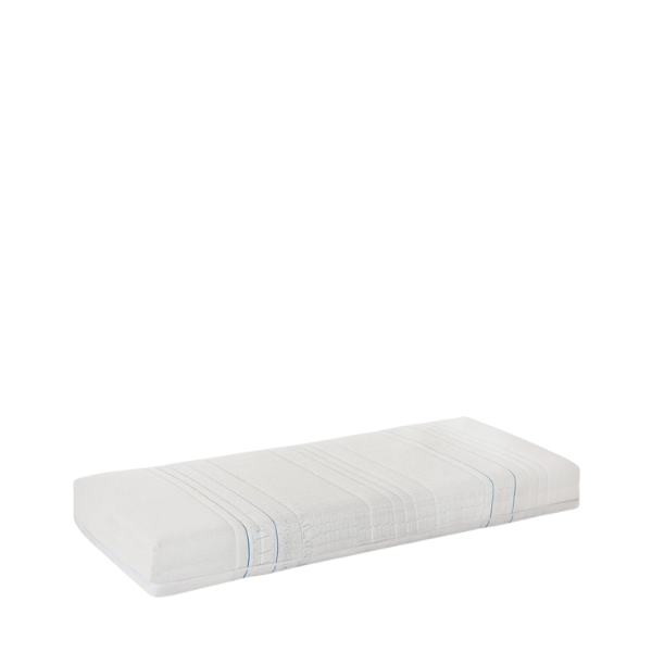 BUDOWA:Materac składa się z płyty pianki wysokoelastycznej typu kaltschaum (HR) o grubości 11 cm, z dwoma stronami użytkowymi: 3-strefową, dopasowującą się do ciała, oraz bezstrefową, o jednolitej twardości. Jednostronnie obłożony jest elastycznym lateksem typu Ocean Blue o grubości 3 cm, który wzbogacono o żel silikonowy. Żel wchłania nadmiar wilgoci, poprawiając mikroklimat, zapobiegając uczuciu spoconej skóry oraz chroniąc przed grzybami i pleśnią. Dzięki tej konstrukcji materac zapewnia wygodny, zdrowy i higieniczny sen.