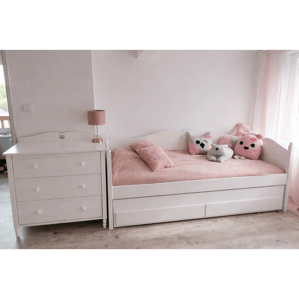 Komoda dziecięca GLAMOUR została wykonana z materiałów dobranych z myślą o codziennym użytkowaniu w pokoju dziecka. Stabilna konstrukcja, trwałe elementy i dobrze zaprojektowany układ szuflad sprawiają, że mebel jest wygodny i praktyczny przez długi czas.