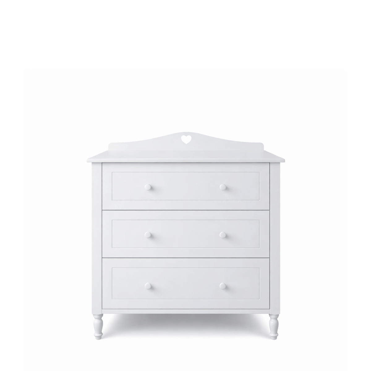 Charakterystyczna listwa z motywem serca nadaje meblowi dziewczęcy, delikatny charakter, który idealnie wpisuje się w eleganckie i romantyczne wnętrza.