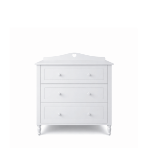 Dekoracyjne frezowania, listwa z motywem serca i delikatne proporcje sprawiają, że komoda tworzy spójną aranżację z innymi meblami z kolekcji GLAMOUR.