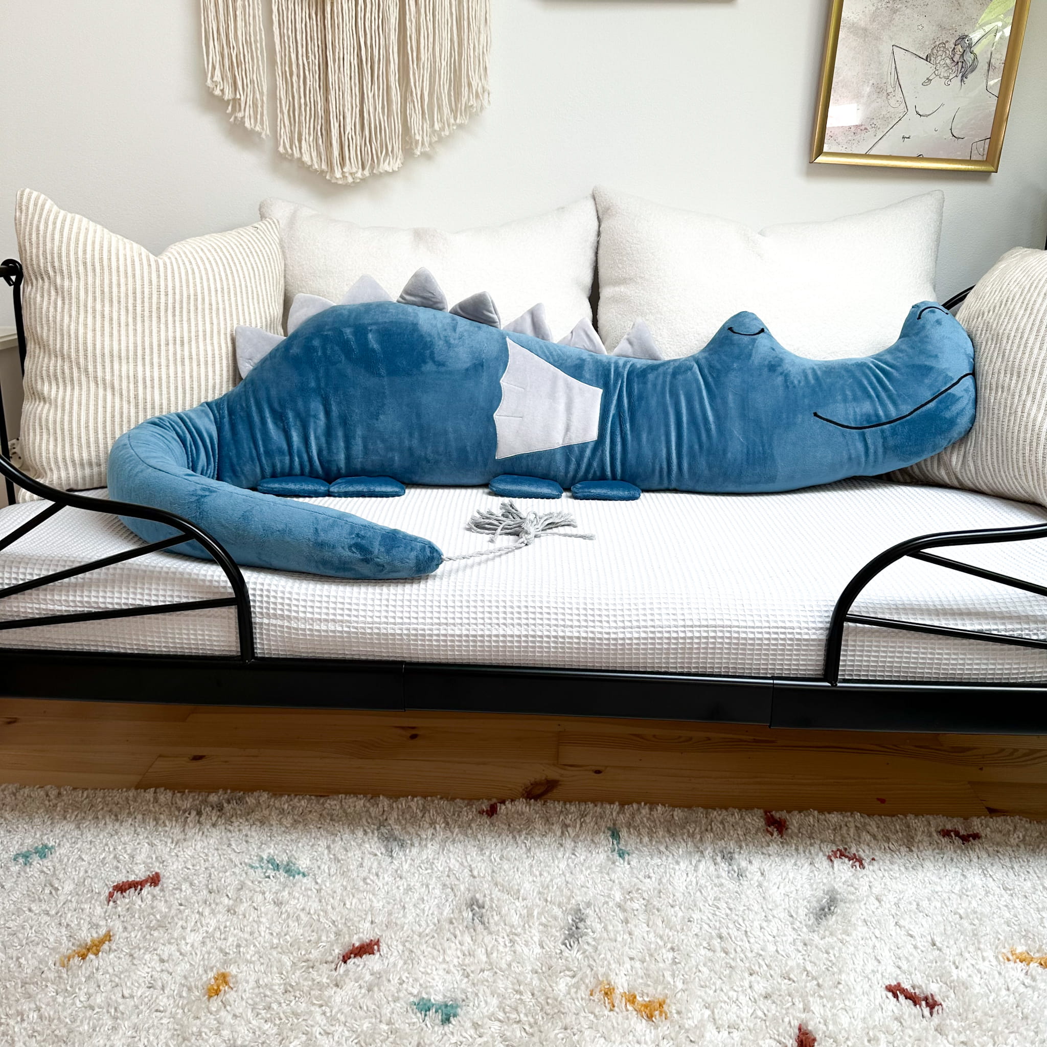 Oto nasza wyjątkowa poduszka wałek w kształcie przyjaznego SMOKAZAURA – idealne rozwiązanie dla bezpieczeństwa i komfortu Twojego dziecka. Nie tylko zapewnia ochronę, ale także sprawia, że sen i zabawa stają się przyjemniejsze!