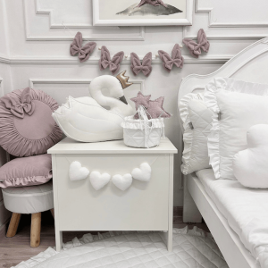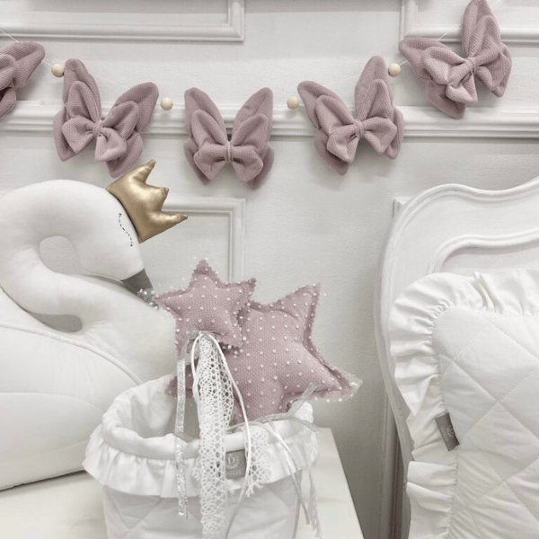 Dzięki uniwersalnej kolorystyce, girlanda pasuje zarówno do pokoju dziewczynki, jak i do wnętrz w stylu boho, skandynawskim czy romantycznym.