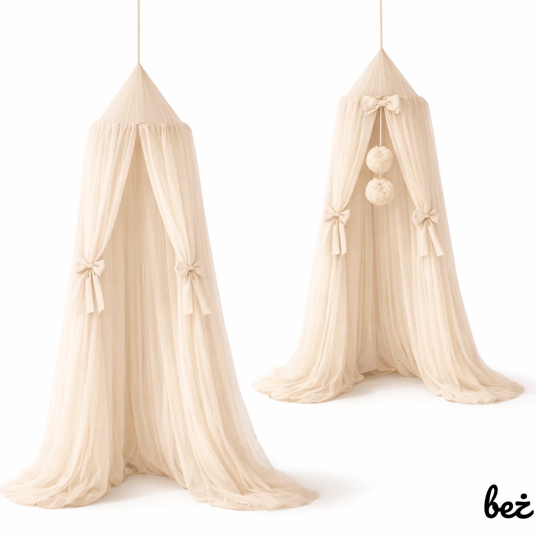 Ten bajeczny baldachim dziecięcy pozwala stworzyć magiczną atmosferę zarówno w sypialni, jak i w pokoju zabaw. Może pełnić funkcję osłony nad łóżeczkiem, ale również stać się uroczym kącikiem do czytania, zabawy czy relaksu. Dzięki swojej formie baldachim staje się centralnym elementem aranżacji wnętrza, nadając mu lekkości, romantycznego charakteru i ponadczasowej elegancji.