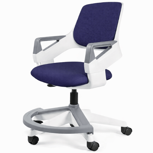 - podnóżek dla małych dzieci – komfort od pierwszych lat Umieszczony na wysokości 14 cm od podłoża, pozwala wygodnie oprzeć stopy nawet przedszkolakom. Zakres odległości podnóżek–siedzisko: 24–36 cm. Dla starszych dzieci – możliwość ustawienia krzesła tak, by podnóżek nie przeszkadzał w opieraniu nóg o podłogę.