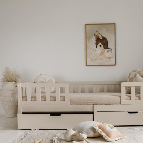 - Komfort i bezpieczeństwo – solidna konstrukcja oraz praktyczne barierki (do wyboru: długa lub dwie krótkie) gwarantują spokojny sen i ochronę Twojego dziecka.