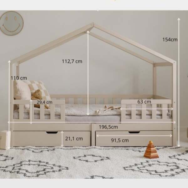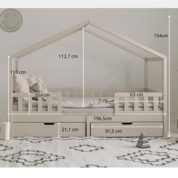 - Design jak z bajki – uroczy kształt domku sprawia, że łóżko staje się centralnym punktem pokoju, zachęcając do kreatywnej zabawy i tworzenia własnych historii.
