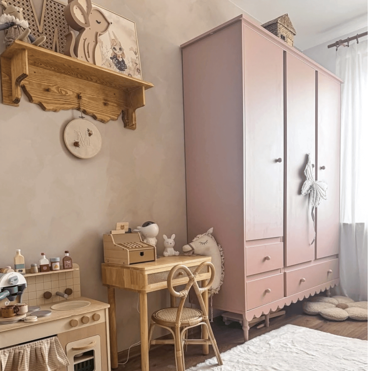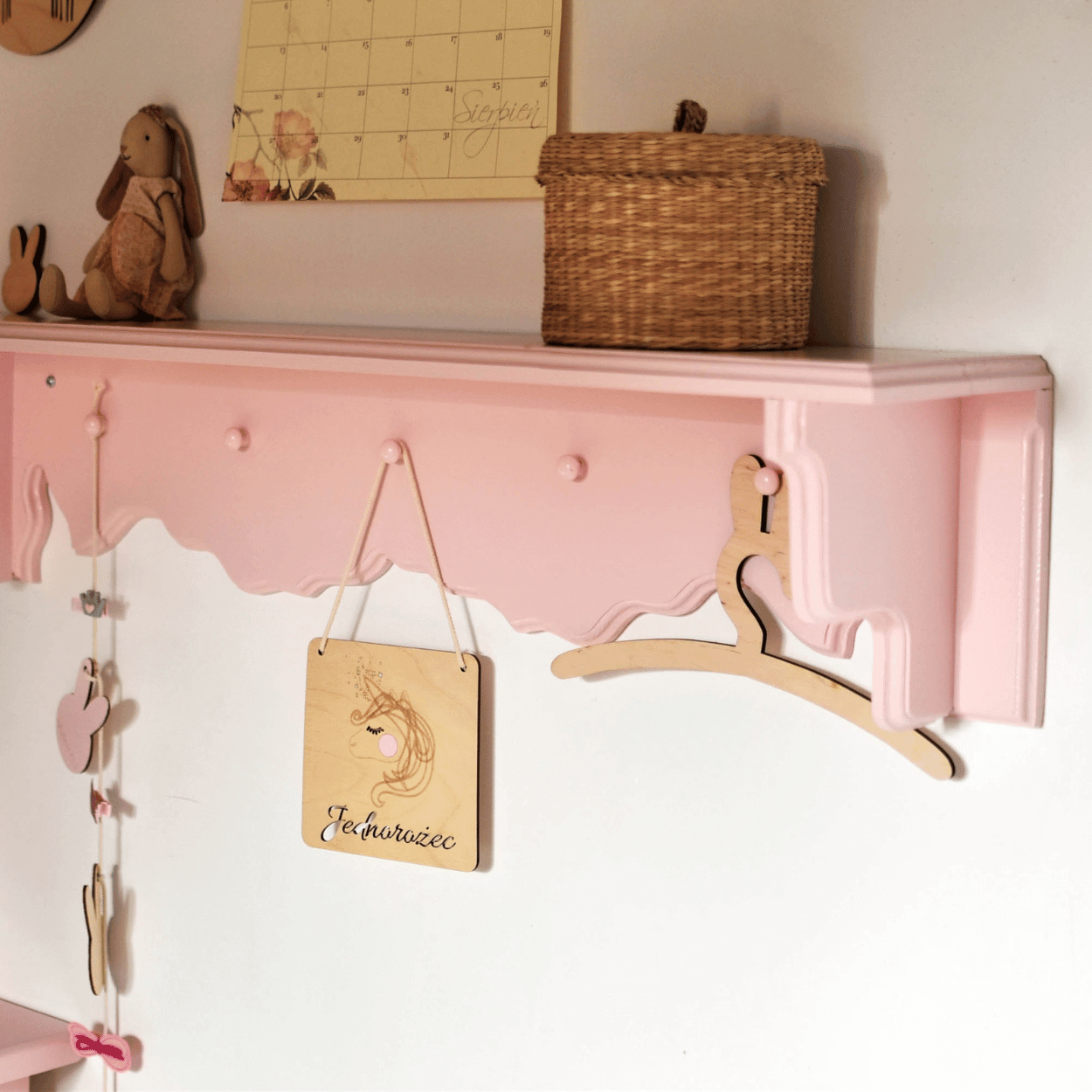 Ręcznie wykonana drewniana półka do pokoju dziecka