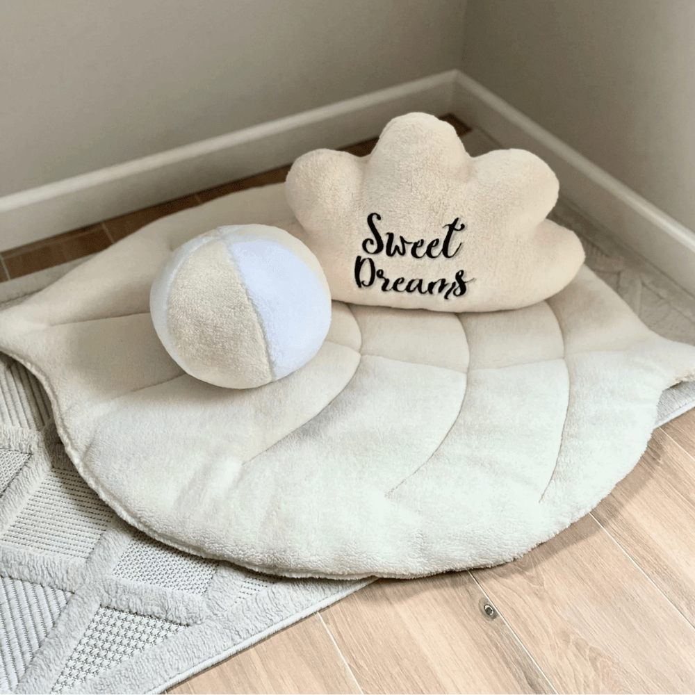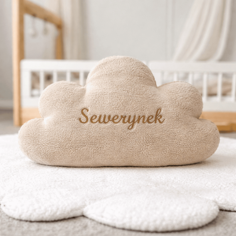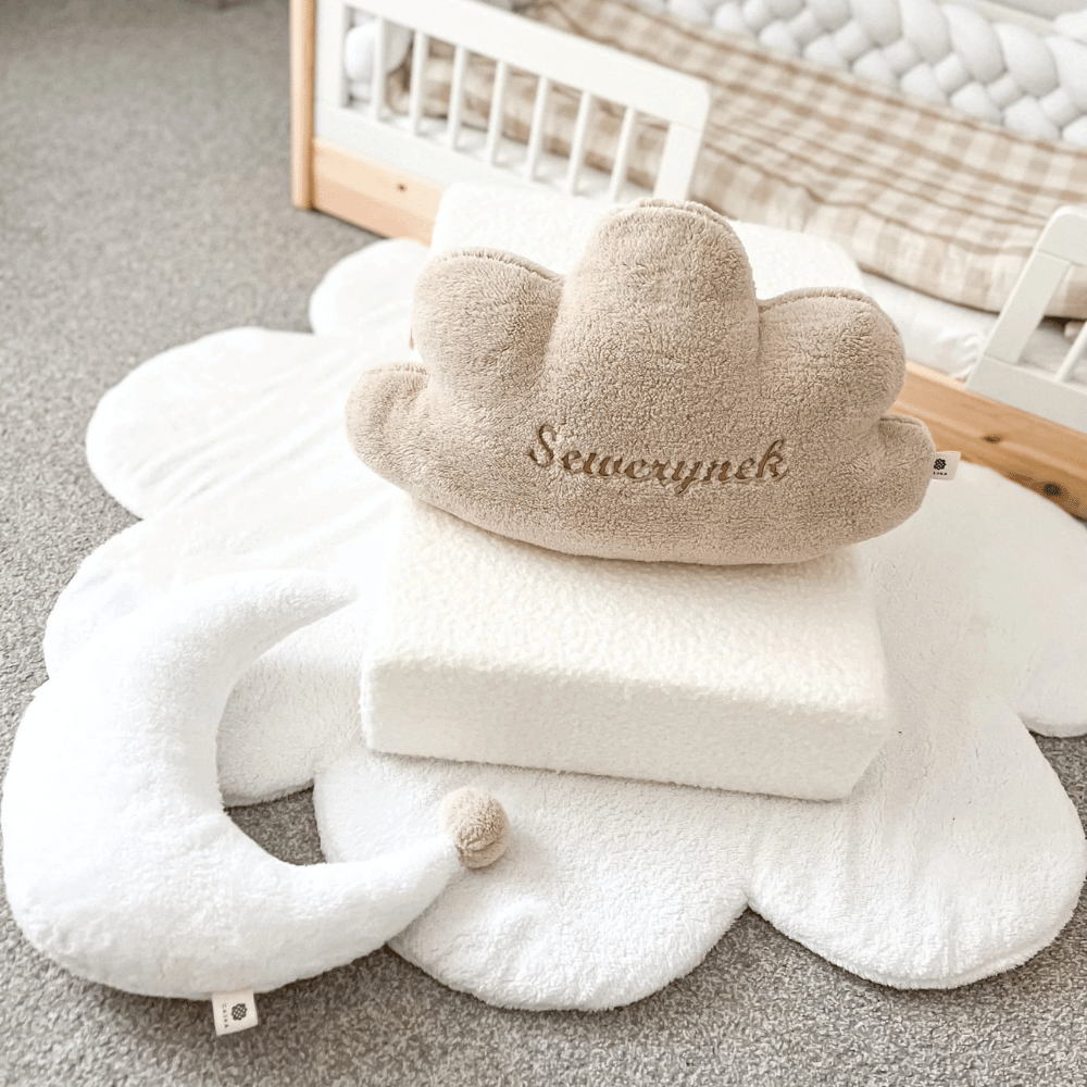 Poduszka w kształcie chmurki to wyjątkowy dodatek do każdego wnętrza, który łączy estetykę z funkcjonalnością. Wykonana z materiału przypominającego owcze runo, poduszka jest nie tylko miękka i przyjemna w dotyku, ale także trwała i starannie uszyta. Wnętrze poduszki wypełnione jest antyalergicznym materiałem, co sprawia, że jest bezpieczna i przyjazna dla osób z alergiami, w tym małych dzieci. Dodatkowym atutem poduszki jest możliwość personalizacji haftu. Na jej powierzchni można umieścić gotowy napis „Sweet Dreams” lub dowolny inny, na przykład imię dziecka, co czyni poduszkę unikalnym prezentem lub pamiątką.