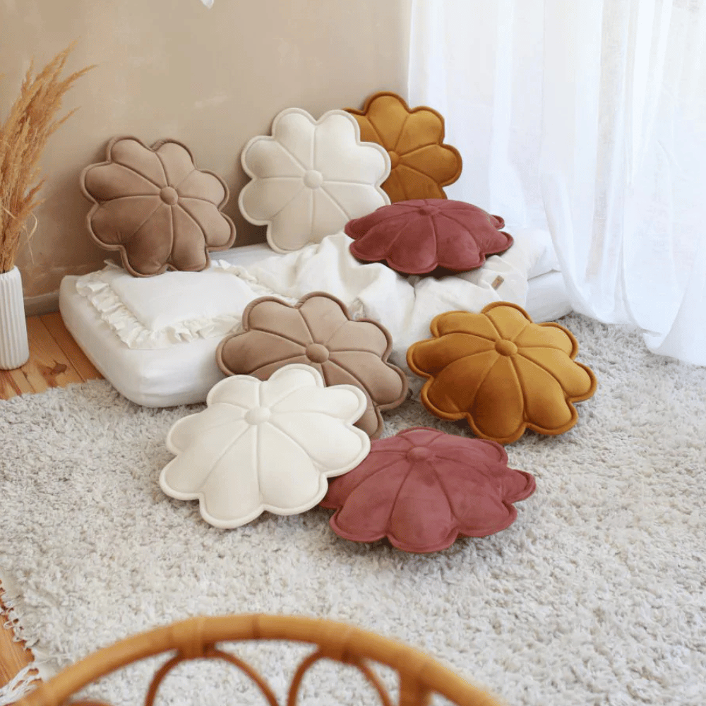 Produkt dostępny jest w szerokiej gamie kolorystycznej, co pozwala na tworzenie spójnych lub kontrastowych aranżacji dopasowanych do stylu wnętrza oraz indywidualnych potrzeb dziecka. Poduszka DAISY świetnie prezentuje się na łóżku, macie do zabawy czy bezpośrednio na podłodze, stanowiąc zarówno funkcjonalny, jak i dekoracyjny element przestrzeni.
