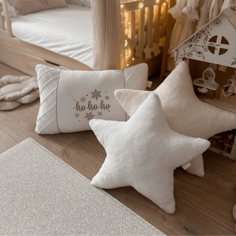Poduszka GWIAZDKA TEDDY to uroczy i niezwykle przytulny dodatek do pokoju dziecięcego, który łączy funkcję dekoracyjną z codziennym komfortem. Jej miękka forma i delikatny kształt gwiazdki wprowadzają do wnętrza ciepło, harmonię oraz bajkowy klimat, sprzyjający wyciszeniu i relaksowi dziecka. Doskonale sprawdzi się na łóżku, w kąciku zabaw lub jako towarzysz drzemek i czytania bajek.