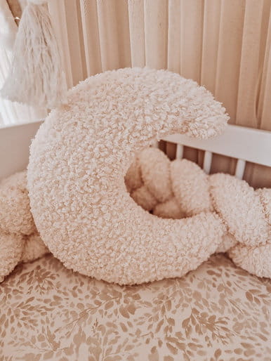 Poduszka w kształcie księżyca to idealny dodatek do łóżeczka dziecięcego, kosza Mojżesza, kołyski czy namiotu tipi. Świetnie sprawdzi się również jako element dekoracyjny w pokoju niemowlęcym i dziecięcym, tworząc ciepłą, przytulną atmosferę sprzyjającą odpoczynkowi i wyciszeniu.