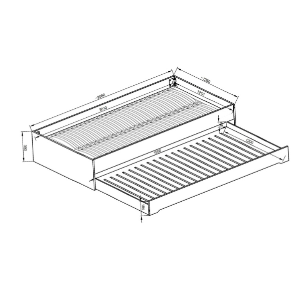 - Boczek jest przykręcany do ramy łóżka i ma wymiary około 100 x 30 cm.