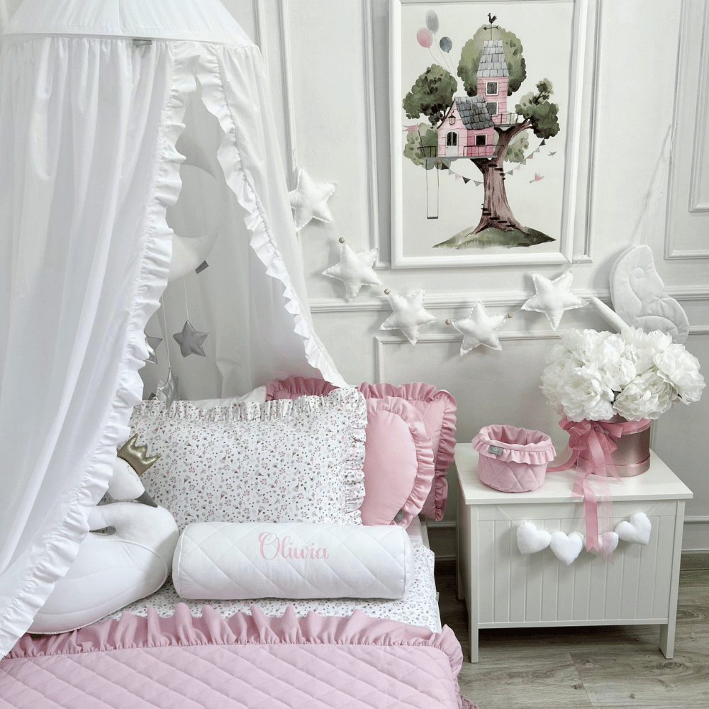 to wyjątkowy dodatek, który nada łóżeczku dziecięcemu przytulności, stylu i harmonii. Wykonana z wysokiej jakości, miękkiego aksamitu, zachwyca subtelną fakturą i eleganckim wyglądem, idealnie wpisując się w estetykę dziecięcych wnętrz – od klasycznych po nowoczesne.