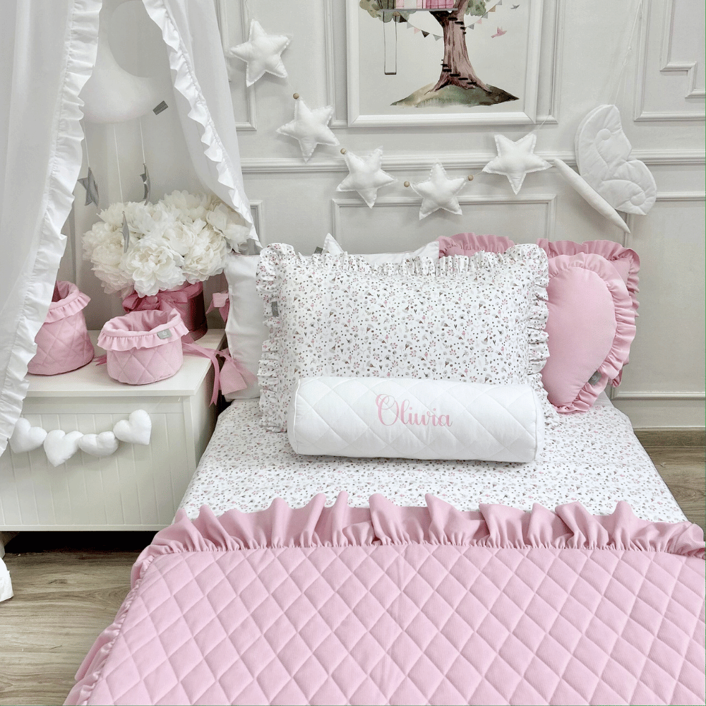 NARZUTA pikowana z falbanką BAJKOWY RÓŻ