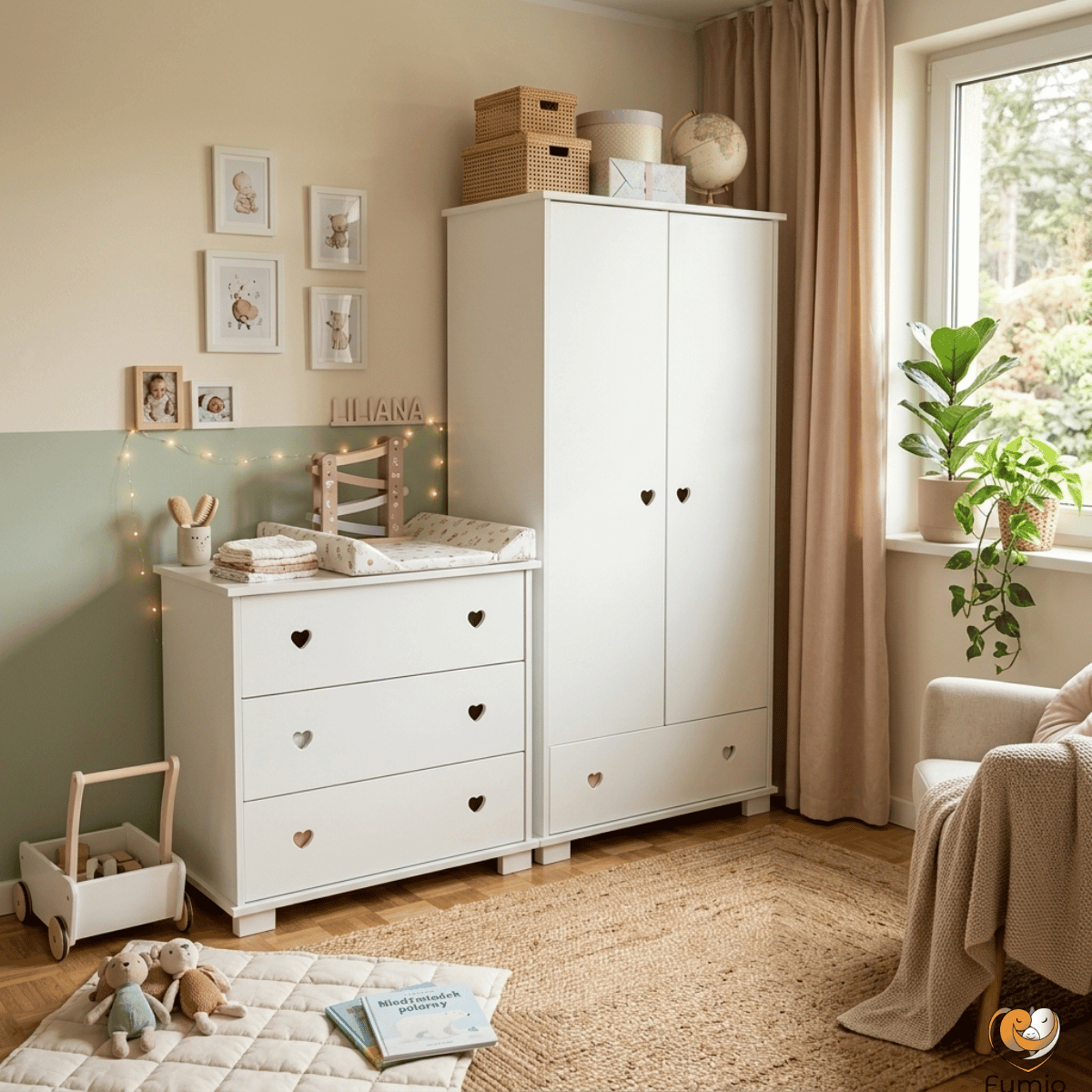 Komoda HEART FUMIO to trwały, bezpieczny i estetyczny mebel dziecięcy, który sprawdzi się przez wiele lat użytkowania. To również świetne rozwiązanie dla rodziców, którzy szukają praktycznego mebla do przechowywania w pokoju dziecka.