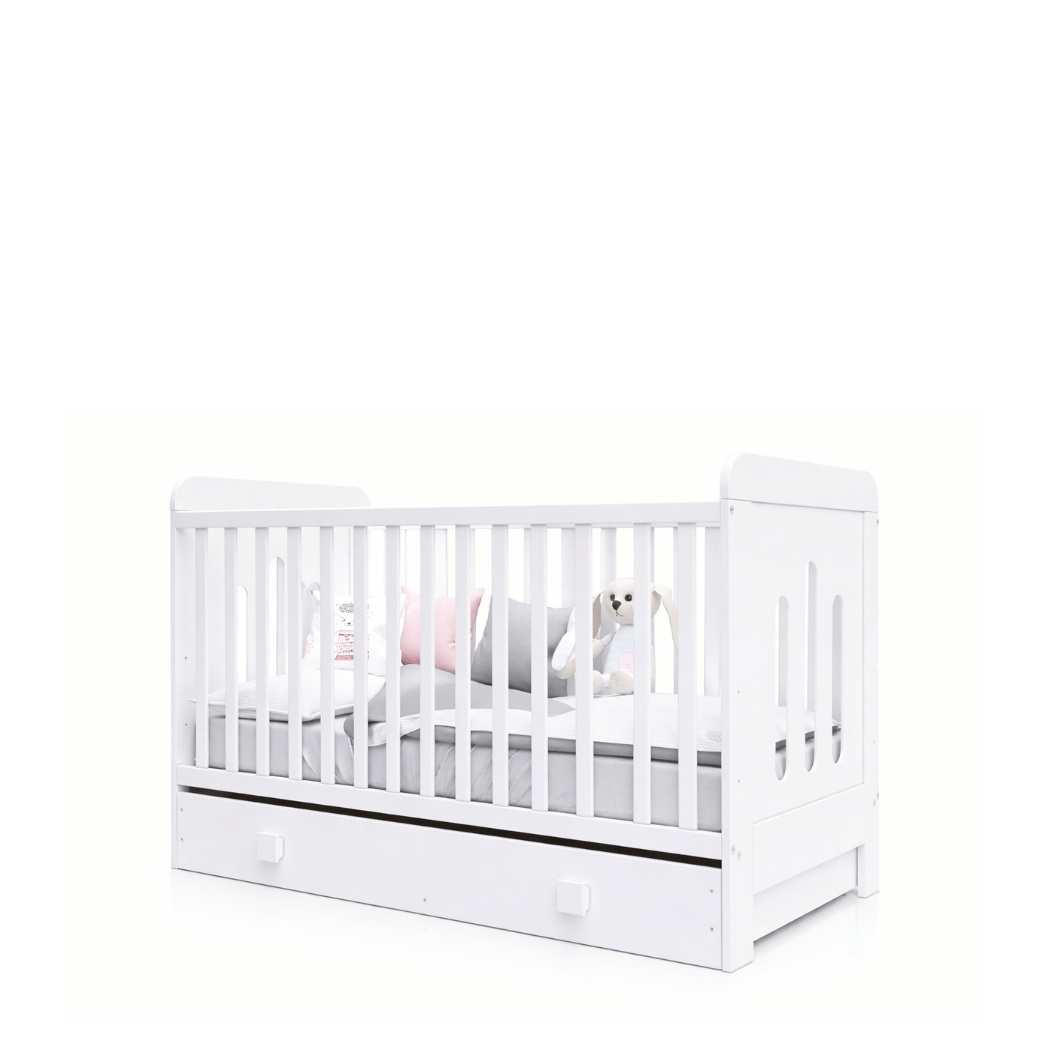 to funkcjonalne i estetyczne rozwiązanie stworzone z myślą o dzieciach od pierwszych dni życia aż po wiek przedszkolny. Dzięki powiększonemu wymiarowi 70x140 cm model ten doskonale sprawdzi się jako łóżeczko „na dłużej”, zapewniając dziecku komfortowy sen na każdym etapie rozwoju. Biała kolorystyka nadaje całości lekkości i sprawia, że łóżeczko idealnie komponuje się zarówno z nowoczesnymi, jak i klasycznymi aranżacjami pokoju dziecięcego.