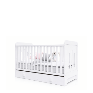 Białe łóżeczko ZUZA 70x140 cm z szufladą to praktyczne rozwiązanie dla rodziców, którzy chcą połączyć estetyczny wygląd z dodatkową funkcjonalnością. Klasyczna, jasna kolorystyka sprawia, że łóżeczko doskonale wpisuje się w aranżację pokoju dziecięcego, a wbudowana szuflada pozwala lepiej wykorzystać przestrzeń pod meblem. To idealne miejsce na przechowywanie pościeli, kocyków, ubranek czy akcesoriów niemowlęcych – wszystko zawsze pod ręką.