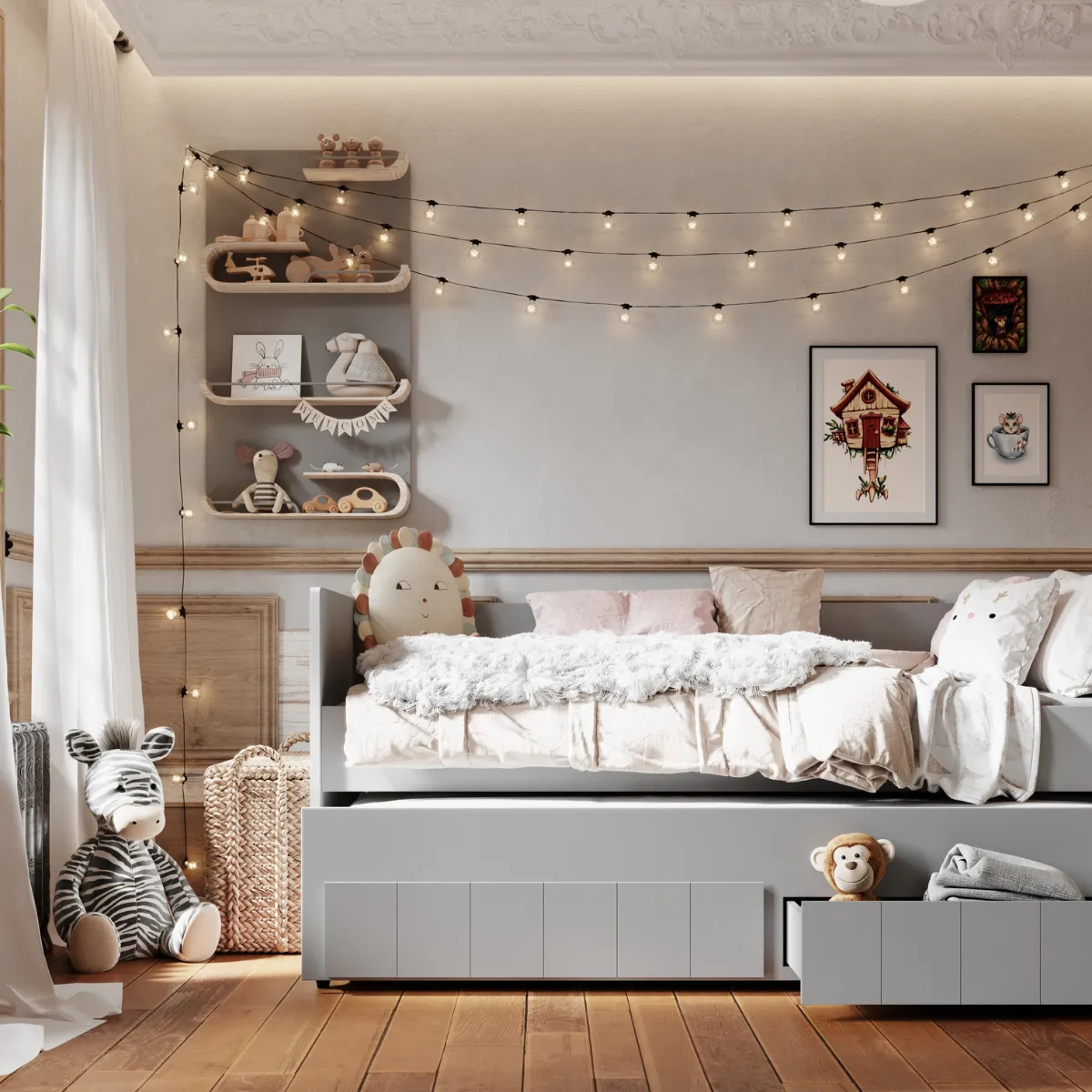 Łóżko dziecięce Pinio Calmo szare 90x200 to praktyczny daybed, który łączy wygodne miejsce do codziennego snu z funkcją dodatkowego miejsca noclegowego. To świetne rozwiązanie do pokoju dziecka, starszaka i nastolatka, zwłaszcza wtedy, gdy liczy się wygoda, estetyka i oszczędność miejsca.