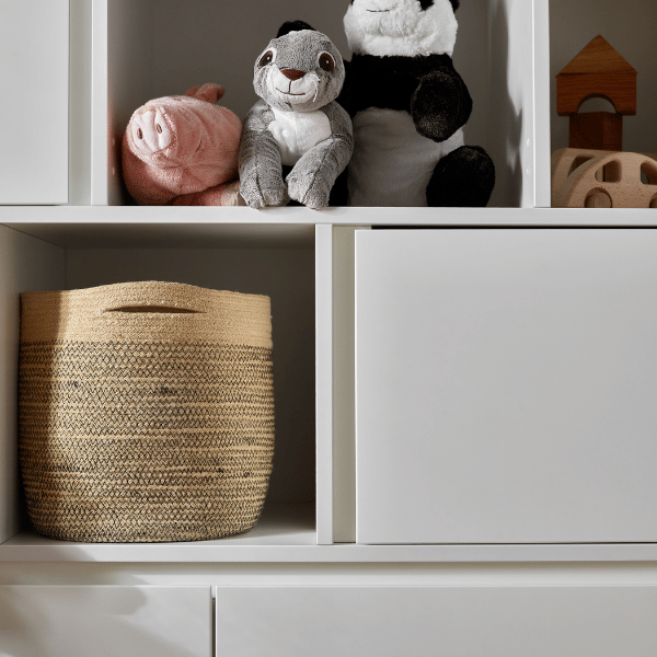 Asymetryczny układ półek o różnej szerokości pomaga lepiej zorganizować przestrzeń i daje więcej możliwości przechowywania – od książek i pudełek po dekoracje oraz ulubione zabawki.