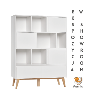 Regał dziecięcy PINIO SWING biały – szeroki regał z półkami i szufladami do pokoju dziecka