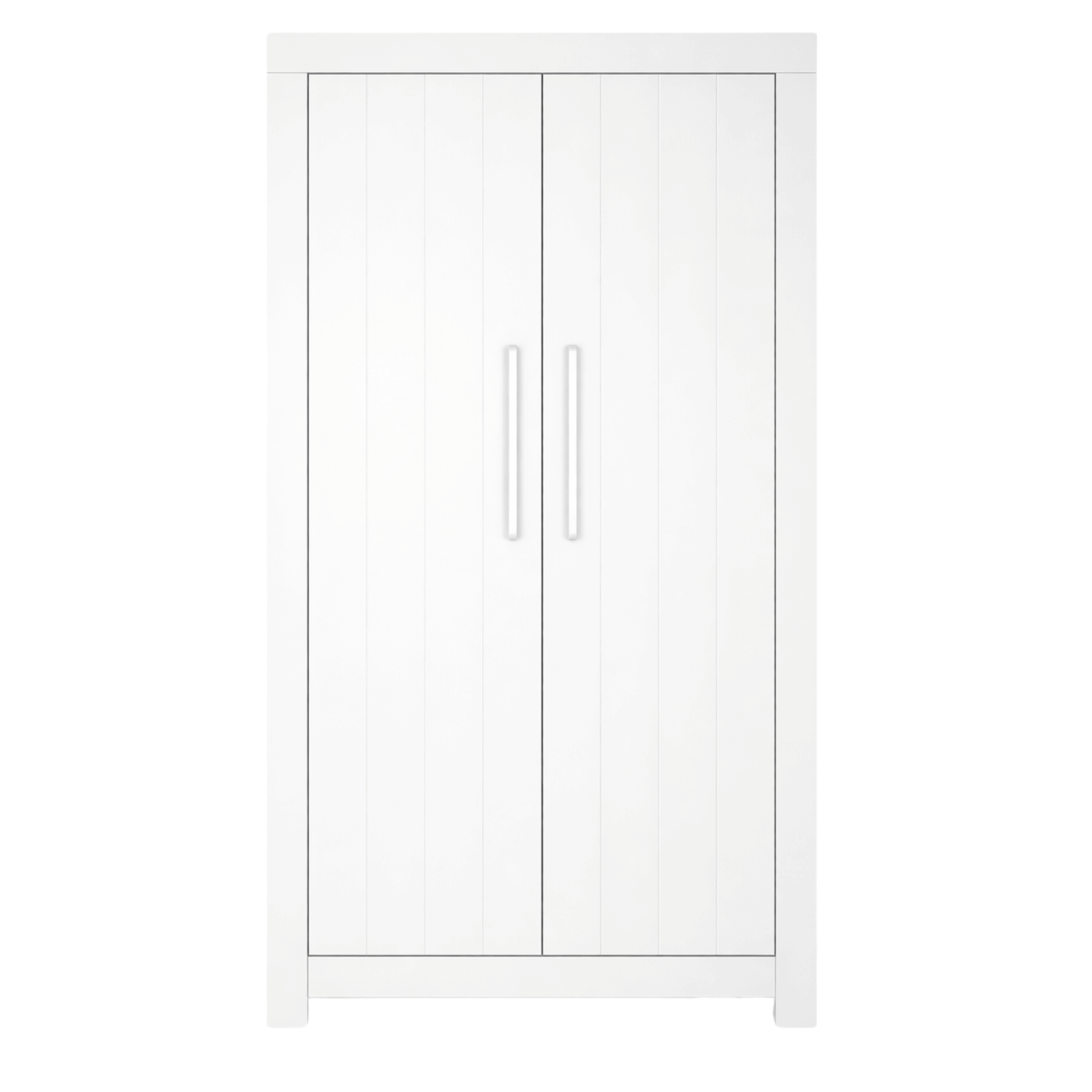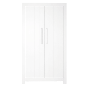 To pojemna biała szafa 2-drzwiowa, która łączy wygodne przechowywanie, praktyczny układ wnętrza i ponadczasowy styl kolekcji Calmo.