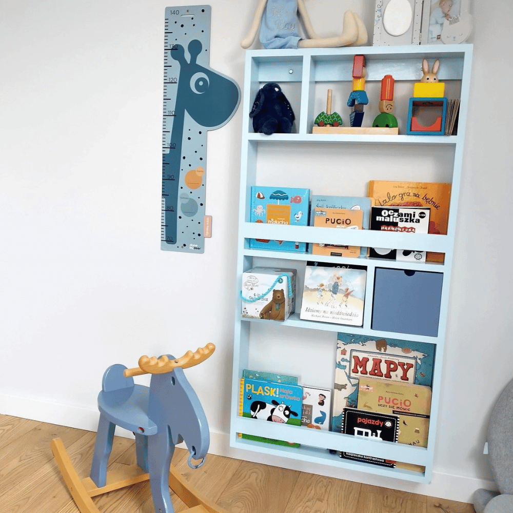 Biblioteczka dostarczana jest w całości – nie wymaga składania. Wystarczy ustawić ją w wybranym miejscu w pokoju dziecka.