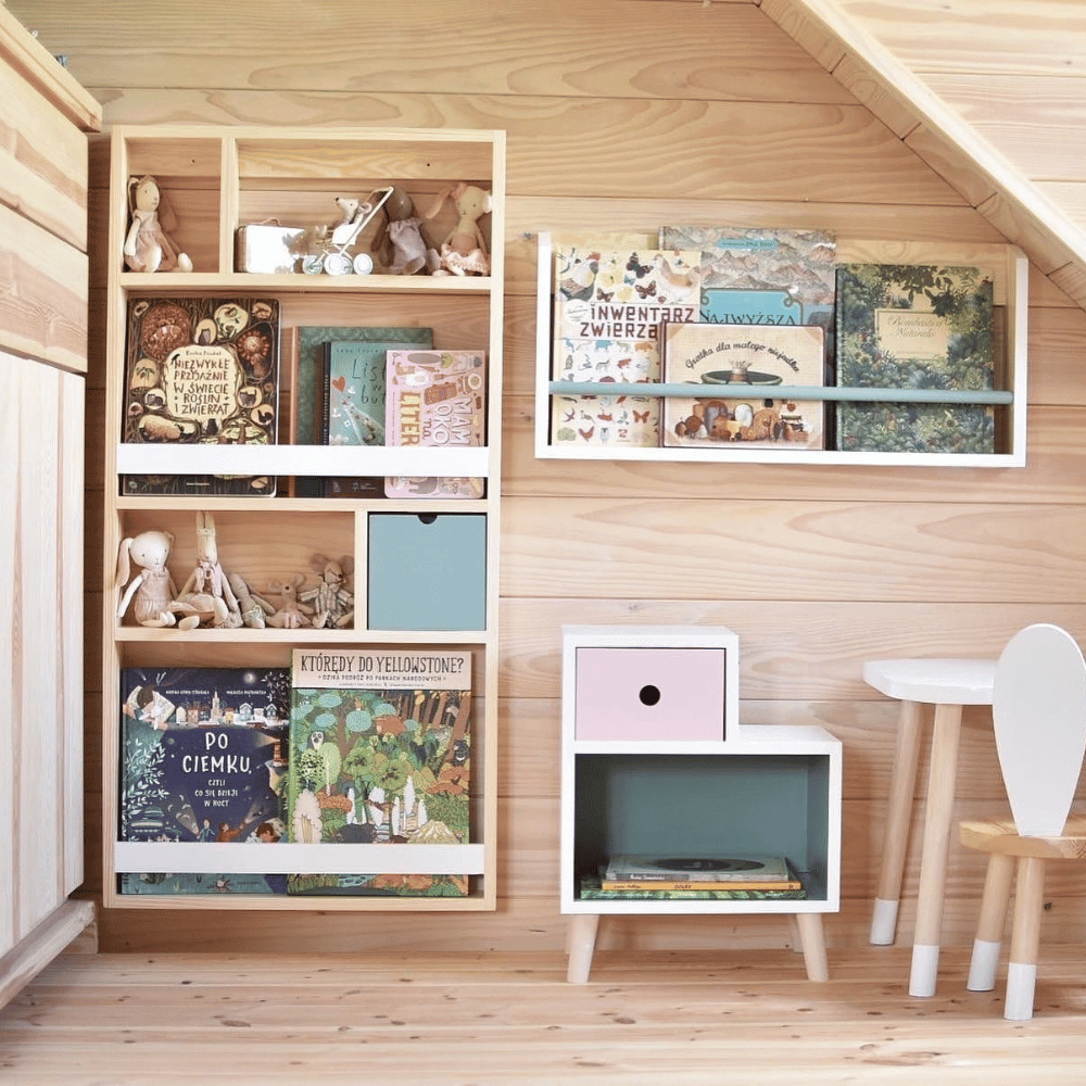 Możliwość wyboru koloru szufladki pozwala dopasować biblioteczkę do wystroju pokoju dziecka. Dzięki temu mebel może stać się nie tylko funkcjonalnym elementem wyposażenia, ale również piękną dekoracją wnętrza. Naturalny design i staranne wykonanie sprawiają, że biblioteczka idealnie wpisuje się w nowoczesne oraz klasyczne aranżacje dziecięcych przestrzeni.