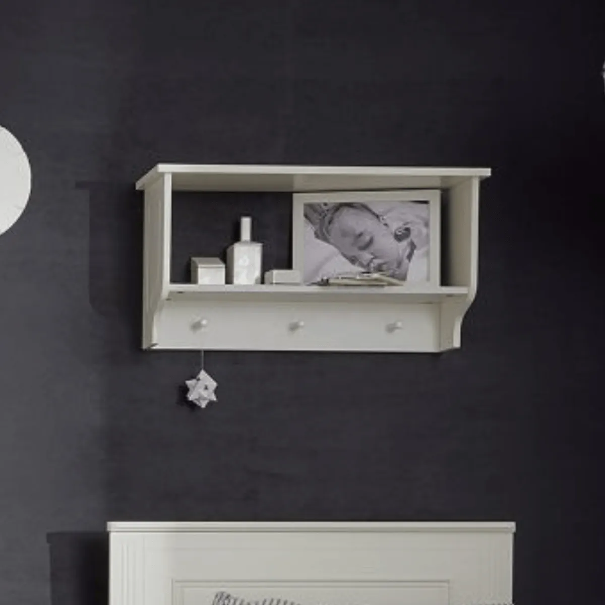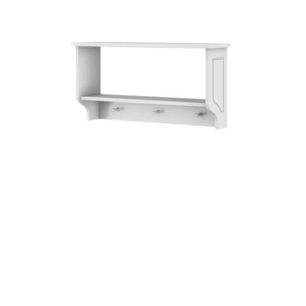 Półkę można zawiesić nad komodą, zyskując wygodne miejsce na akcesoria do pielęgnacji, dziecięce kosmetyki, książeczki, rodzinne zdjęcia lub ulubione pluszaki. Dzięki 3 praktycznym wieszakom świetnie sprawdza się także jako organizer na ubranka, dodatki i najpotrzebniejsze drobiazgi.