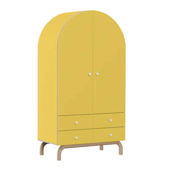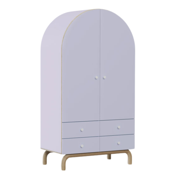 Prosta bryła mebla została osadzona na eleganckim, drewnianym stelażu, który dostępny jest również w kolorze blatu. Dzięki szerokiej palecie kolorów i wykończeń dostępnych w ofercie MINKO, szafę można łatwo dopasować do gustu dziecka lub nastolatka – od delikatnych pastelowych barw po intensywne, energetyczne odcienie.