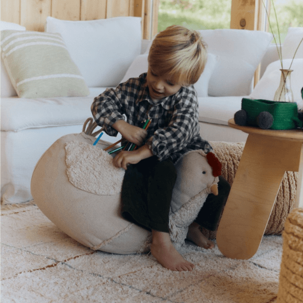 Urocza pufa KURA została wykonana ręcznie z miękkiej, przyjemnej w dotyku bawełny, zapewniającej komfort i bezpieczeństwo nawet dla najmłodszych. Piękny kura, doskonale wykonana wprowadzi miły akcent do dziecięcego pokoju. To nie tylko piękna dekoracja – to również świetny rekwizyt do zabawy i odpoczynku. To doskonały wybór dla rodziców, którzy szukają produktów łączących estetykę, funkcjonalność i wartość edukacyjną.
